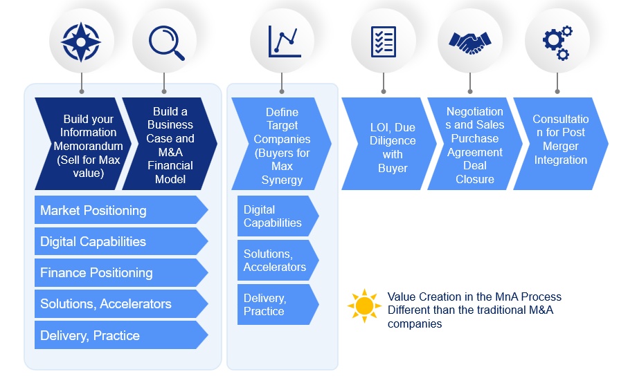 DX·Stride assists in the structuring of your path to M&A by embracing it as a logical extension of your growth strategy, whether as a Seller or Buyer. Your synergy with us could be either as a Buyer or a Seller. DX·Stride shall enable the most fruitful market positioning for a seller coupled with definite scope for sustained growth evolution to the Buyer